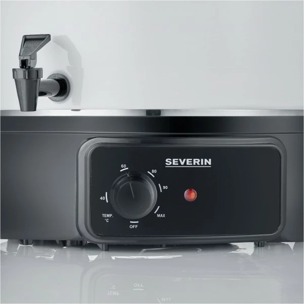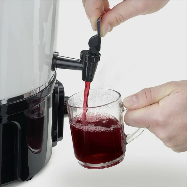 Der praktische Auslaufhahn sorgt dafür, dass die Heißgetränke ganz einfach abgefüllt werden können oder überschüssiges Wasser nach dem Einkochen abgelassen werden kann. Die wärmeisolierten Griffe sorgen für eine sichere Handhabung.