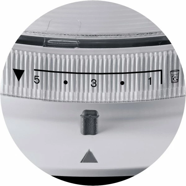 Einstellbarer Fruchtfleischanteil, 20 Watt Leistung, Rechts- und linksdrehender Presskegel, transparenter Saftbehälter mit Messskala und 1 Liter Fassungsvermögen, Klarsichtabdeckung, hohe Saftausbeute, offener Griff für mehr Komfort, Kabelstauraum/Kabelaufwicklung, Start/Stopp Automatik, abnehmbare Teile sind