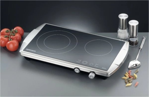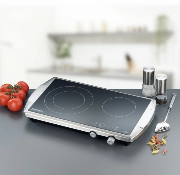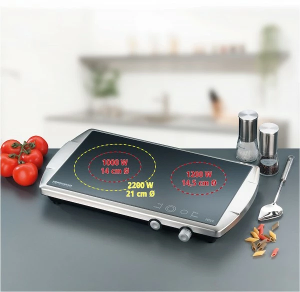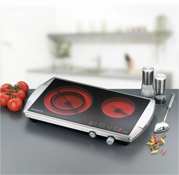 Auch als Doppelkochplatte zieht dieses hochwertige Kochfeld mit original SCHOTT CERAN® Glaskeramik und elegantem, reinigungsfreundlichen Edelstahl Gehäuse alle Blicke auf sich. Es ist ideal als Zusatzgerät zum normalen Herd, perfekt für kleine Küchen, in Büros und Appartements und äußerst beliebt im Catering Bereich für Buffets und Kochvorführungen.