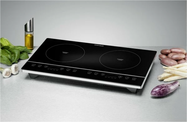 Modern und effizient kochen mit Induktion! Der hohe Wirkungsgrad dieser Technologie spart Energie, Zeit und Geld. Die Hitze wird direkt im Topfboden erzeugt, dadurch steht sie so schnell zur Verfügung wie bei einem Gasherd, nur erheblich sicherer. Die Kochfläche selbst nimmt nur die Abwärme des Topfes auf. Ob als Ergänzung zum bestehenden Herd oder als mobile Kochstelle für Single-Appartement, Ferienhaus oder Büro – Induktionskochtafeln sind überall schnell und flexibel einsetzbar. Die Regelung erfolgt je nach Bedarf über eine 10-Stufen Leistungswahl oder über eine Temperaturvorwahl (60 °C bis 240 °C.). Für hohen Benutzerkomfort stehen die Bedienung über Touch Control Sensoren, LED Anzeigen und die 180 Minuten Zeitschaltuhr. Eine automatische Abschaltung mit Signalton und die Restwärmeanzeige gewährleisten zusätzliche Sicherheit beim Betrieb. Es gibt viele gute Gründe, sich für eine ROMMELSBACHER Kochtafel mit Induktion zu entscheiden!