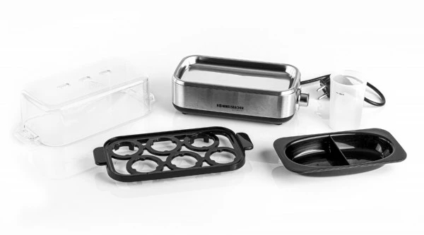 Auch pochierte Eier können im Gerät zubereitet werden, dazu nutzt man den praktischen Pochier-Einsatz, in welchem zwei pochierte Eier gleichzeitig garen können. Dank des Pochier-Einsatzes kann das Gerät sogar als kompakter Dampfgarer genutzt werden.