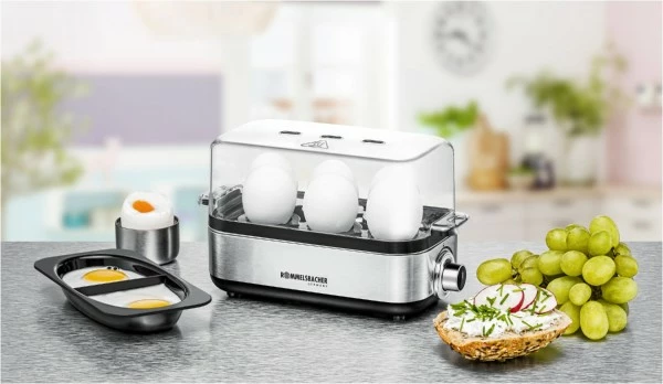 Mit diesem attraktiven Eierkocher für den kleinen Haushalt gart man bis zu sechs Frühstückseier zuverlässig auf den Punkt. Hochwertige Materialien und ein einfaches Bedienkonzept überzeugen auch direkt auf dem Frühstückstisch. Das Garen erfolgt zeitgesteuert mit stets gleicher Wassermenge, so dass man schnell die richtige Einstellung des bevorzugten Härtegrads findet.